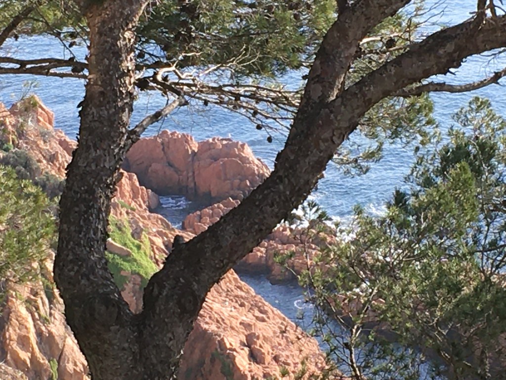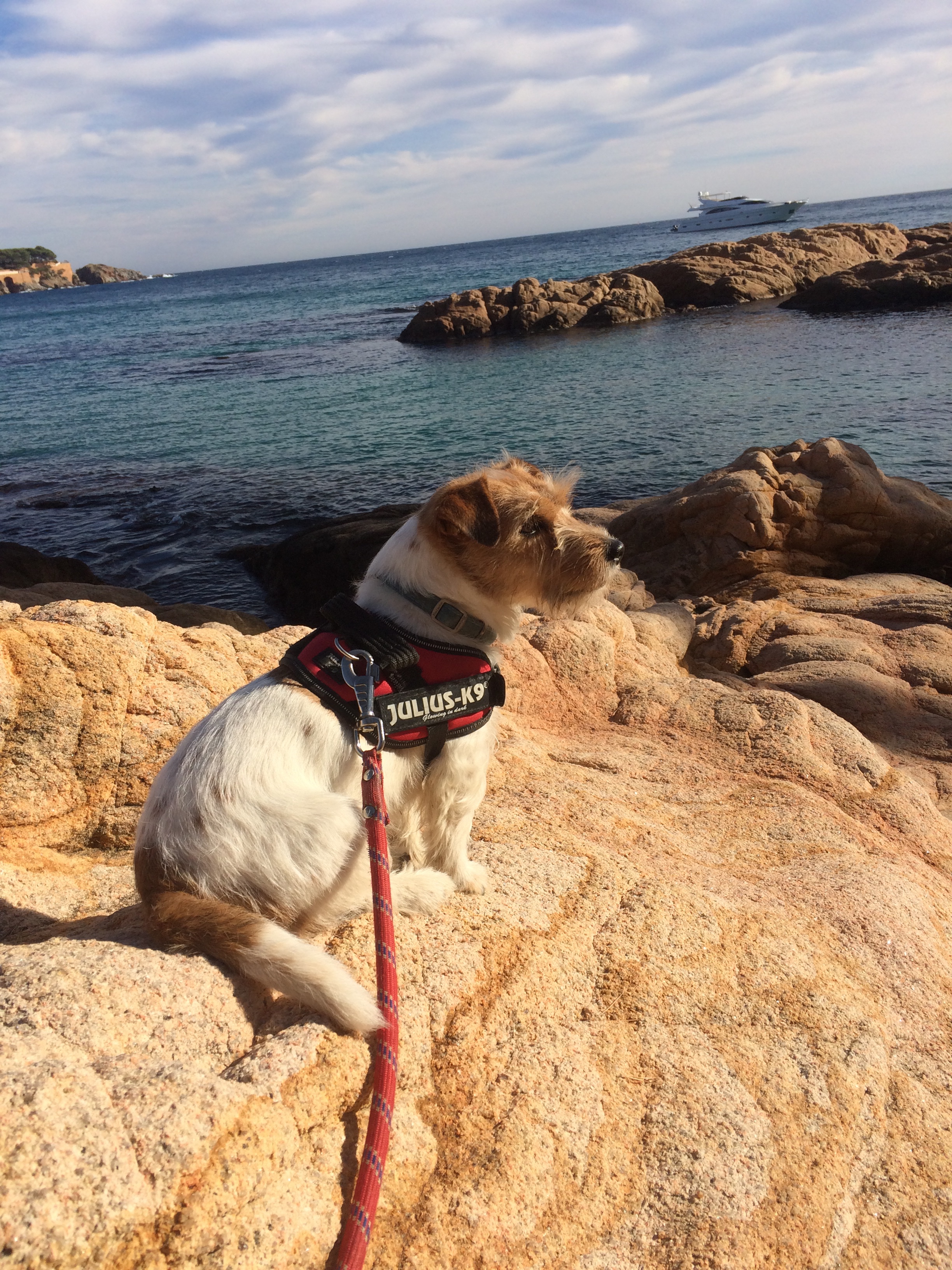 We have found a place we love on the coast not far from Girona in Spain. There’s a great place to park the van, just a short walk from the beach and the town centre. It’s a friendly place. There’s a town square where you can get a great cafe amb llet, they speak Catalan here. There’s a market in the morning groaning with fruit and vegetables, cheeses, cured meats, olives. Our mouths water as we choose what we fancy for lunch. There’s a hustle and bustle to the place. There’s always something to watch. Just up the street from the market is a little wine shop, they have a couple of tables and chairs outside and will pour you a glass of wine and bring you some olives. The wine is cold and sharp the olives salty and slightly bitter. Our taste buds have been awakened. Time for lunch. Then we wander back to the van put a table and chairs in the sun and unwrap the goodies we bought in the market, a crisp lettuce still muddy from the field, a snail nestling among its leaves, ripe tomatoes, radishes, hard salty cheese a local sausage. After lunch we put on our walking boots, put some water, a few nuts a little collapsible bowl for the dogs in the back pack and strike off for the coast.