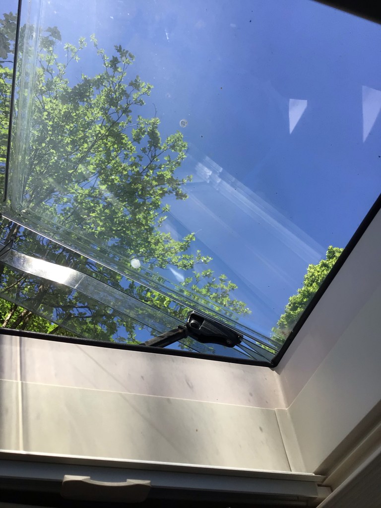 The insistent clanging of the seven o’clock bell eventually penetrated my sleep and by degrees I began to be aware of other morning sounds. The raucous, boastful crowing of a cockerel. The trilling of a songbird heralding, rather too gaily I thought, another warm, sunny day. Awake now, I could hear the call of a cuckoo in a distant wood. The smell of somebody’s morning coffee mingled with the breeze and drifted in through the window. Through the ceiling hatch of the van I watched the grey mist evaporate to be replaced by an ever intensifying blue. Finally, shafts of sunlight started to work their way through the little gaps between the window blinds and landed in odd shaped splashes on the wall behind my head. I slid open the door of the van and stepped out onto the dewy grass. The air was still cool but, out of the shade, the sun was already hot. I let the warmth soak into me for a few minutes, basking like a lizard charging itself up for the day ahead.