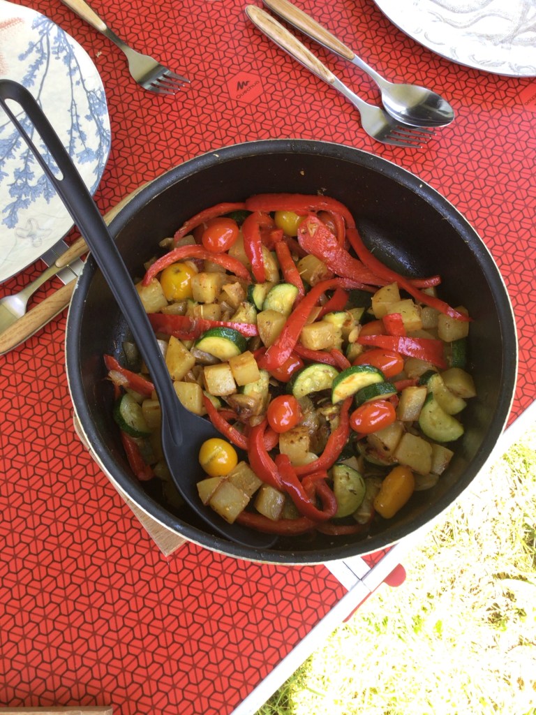 Our shopping bag full, we headed back to the van. Lunch was simple but delicious, peppers, courgettes, tomatoes and plump local lamb chops. For dessert wild cherry crumble tarts. We eventually roused ourselves from the table, fetched our books and spent the rest of the afternoon reading and dozing by the river.