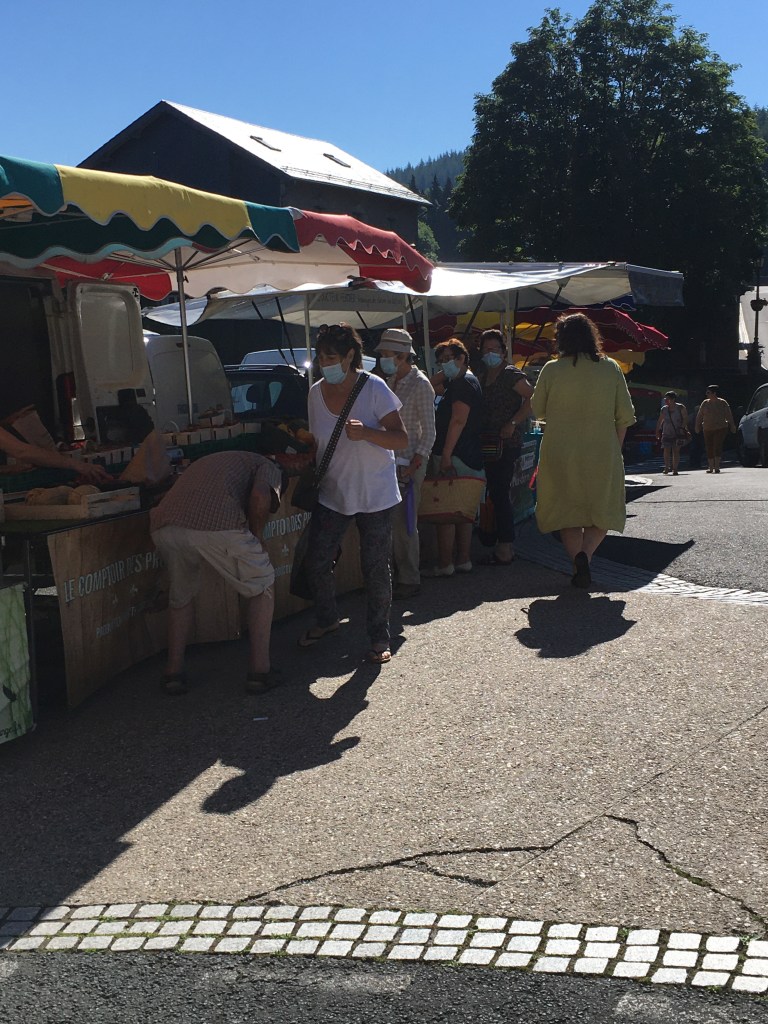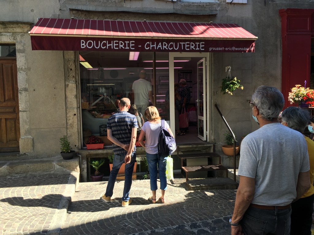 Mud streaked pickup trucks and quad bikes kept arriving from the surrounding countryside and there were soon queues outside the baker’s and butcher’s shops. The little market was buzzing as people squeezed and prodded and smelt, testing for quality and ripeness. Jars of locally produced honey glowed gold in the sun and the little white discs of fresh goats cheese beckoned irresistibly. The town vibrated with activity and chatter and laughter, the months of distancing and confinement seemingly forgotten. The only sign that the times were not completely normal, the masks over people’s faces.